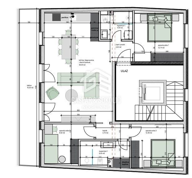 prekrasan 4-soban stan u novogradnji, idealan za obiteljski život ili ugodno stanovanje. Stan se prostire na 96 m² i nudi savršenu kombinaciju funkcionalnosti i udobnosti. Sastoji se od tri prostrane spavaće sobe, open space koncepta kuhinje, blagovaonice i dnevnog boravka, dvije moderne kupaonice te balkona koji je okrenut prema mirnoj dvorišnoj strani, pružajući Vam privatnost i opuštanje. Uz to, stan dolazi s vanjskim parkirnim mjestom od 15 m² te garažnim parkirnim mjestom iste veličine.