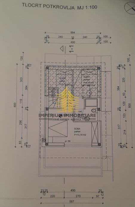 - Potkrovlje: tri spavaće sobe i druga kupaonica