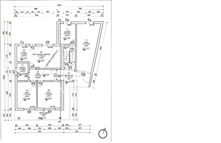 Prizemlje (78,80 m² + spremište i garaža):