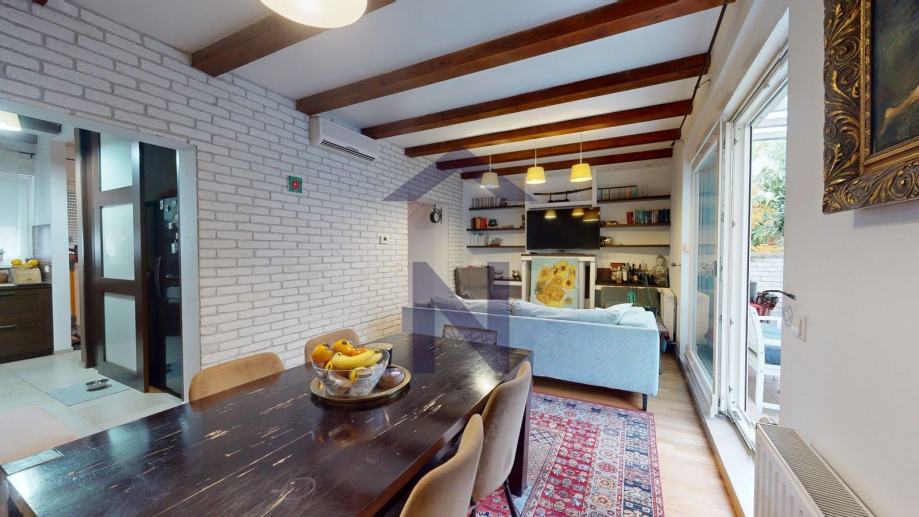 Grijanje je centralno etažno plinsko, a stolarija PVC. Energetski certifikat je B.