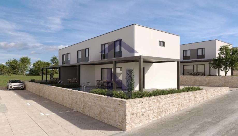 Wir bieten neu gebaute Wohnungen in Mandre zum Verkauf an. Das Projekt besteht aus 8 modern gestalteten Reihenhäusern, jeweils mit 3 Duplexwohnungen.