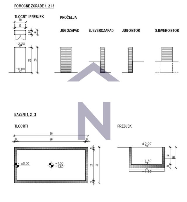 Stan ukupne površine od 82,60m2 sastoji se od kuhinje i blagovaonice, dnevnog boravka s izlazom na terasu s bazenom dimenzija 6x3, hodnika, spremišta i kupaonice u prizemlju ukupne površine 38,40m2.