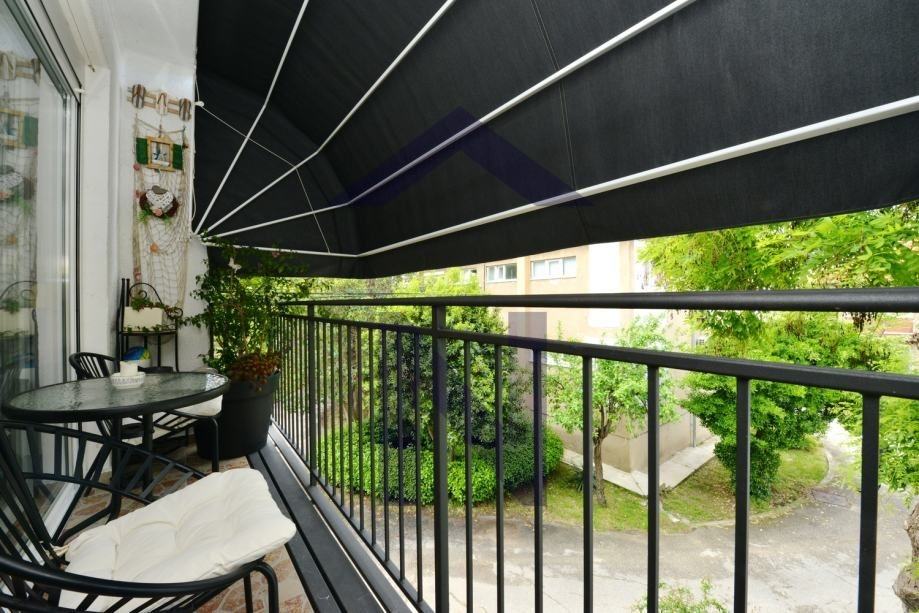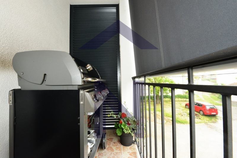 Iz kuhinje se izlazi na na poluzatvoreni balkon sa grill roštiljem, a ima i drugi, južni, balkon sa pogledom na dvorište, zelenilo i more.