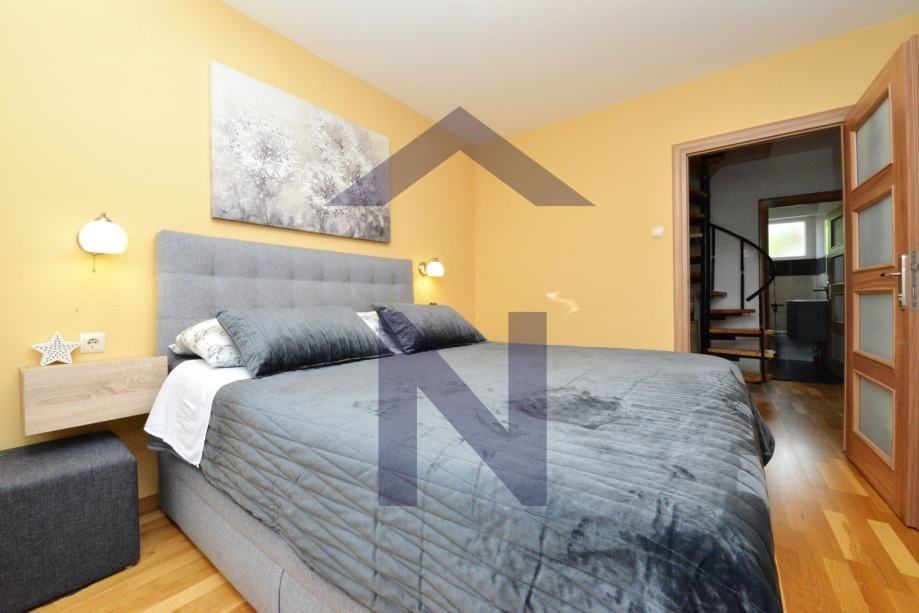 Unutarnjim stepeništem dolazi se do druge etaže stana (potkrovlja) koja se sastoji od: predsoblja, dvije spavaće sobe sa standard bračnim krevetima, garderobnim ormarima, smart-tv te dvije pomoćne prostorije koje su zatvorene a njihovim otvaranjem može se dobiti jedna velika soba.