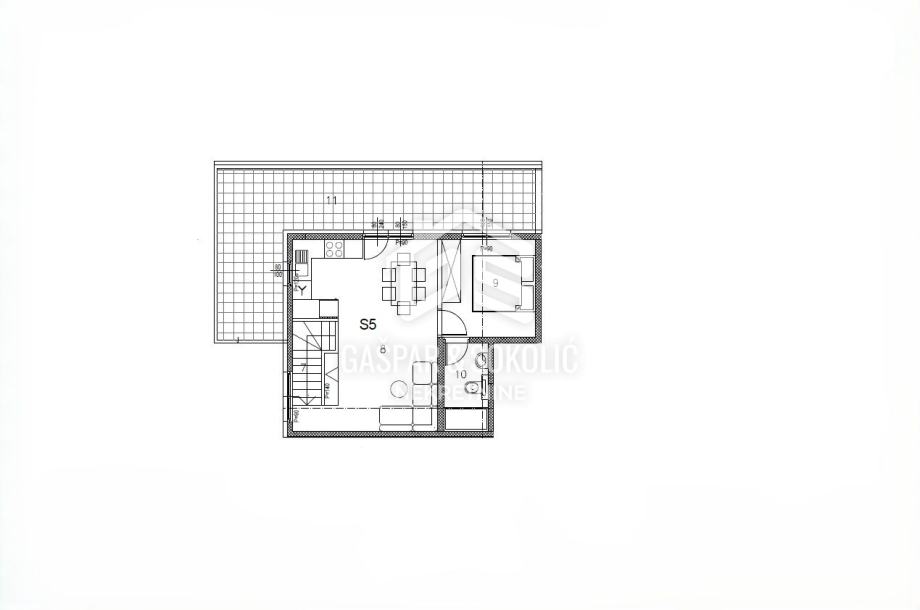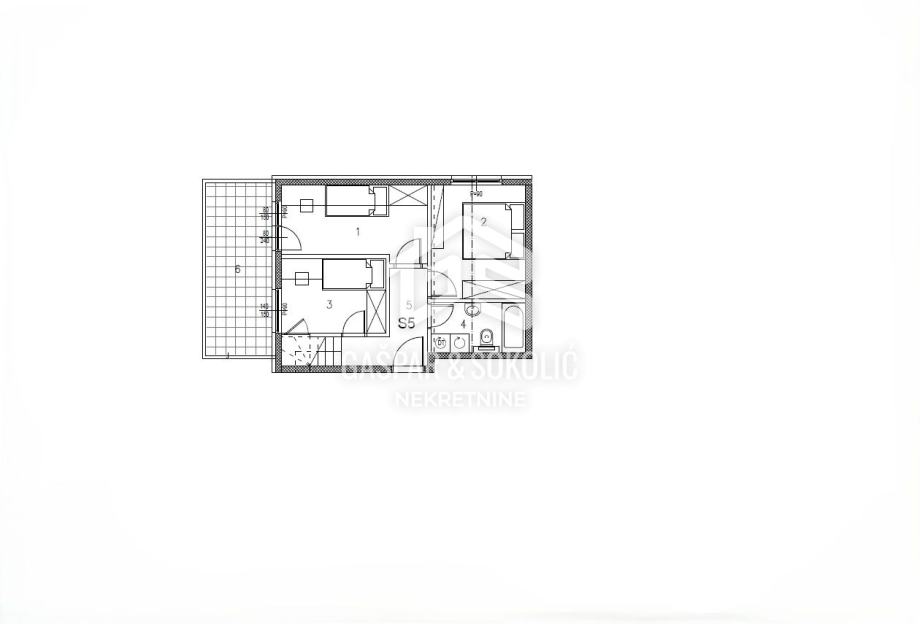 Stan S5 (92,78 m²) nudi tri spavaće sobe, dvije kupaonice, dnevni boravak s kuhinjom i blagovaonicom te veliku terasu od 26,82 m², pružajući obilje prostora i privatnosti, idealno za veće obitelji. Obavezna kupnja garažnog parkirnog mjesta površine između 13,70 m2-17,70 m2, ovisno o preferencijama i raspoloživosti.