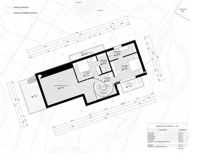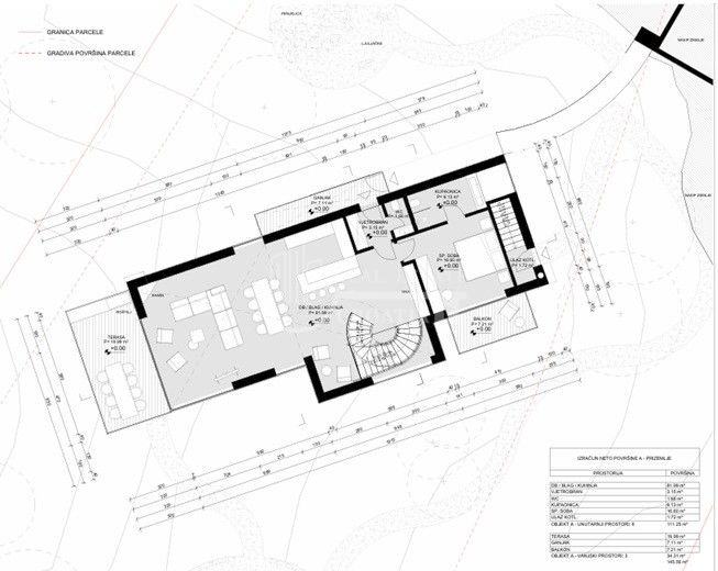 Primjer jedne vile predviđa parcelu površine 1.737,61 m².