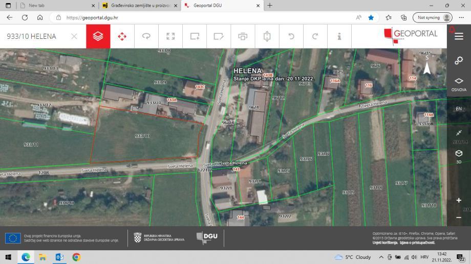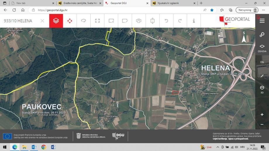 Prodaje se građevinsko zemljište pravokutnog oblika veličine 3079m2 u Svetoj Heleni uz glavnu cestu u blizini poslovne zone i čvora Sveta Helena.