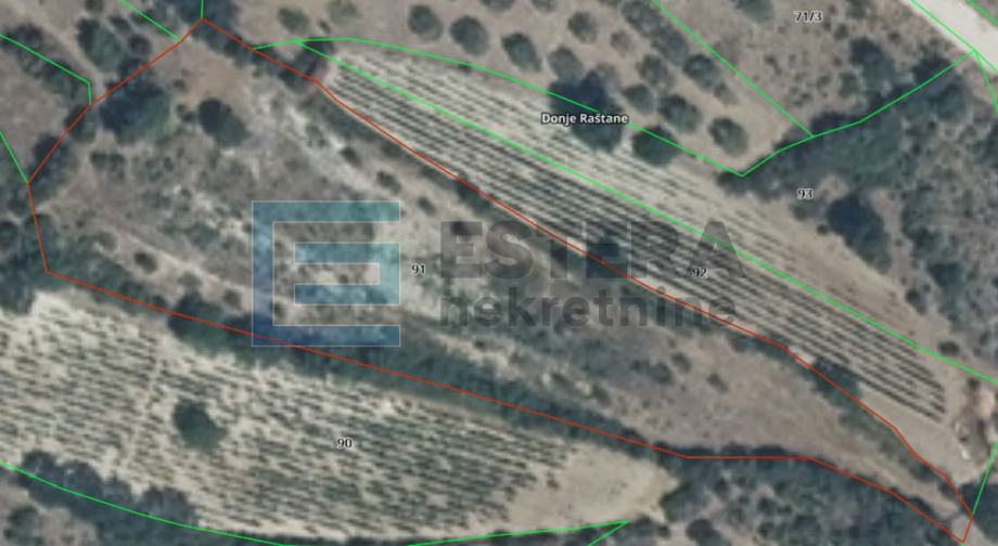RAŠTANE, prodaje se građevinsko zemljište 1580 m2, Dužine cca 140 m i prosječne širine cca 25 m, nalazi se u neizgrađenom dijelu građevinske zone. Okolina je mirna a sa zemljušta se pruža pogled na okolna brda i more.