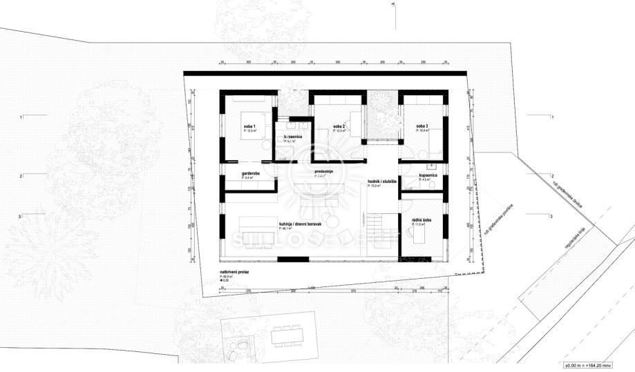 Na parceli se trenutno nalazi starija kućica s postojećim priključkom za struju, što budućem vlasniku olakšava početak gradnje. Za zemljište je ishođena građevinska dozvola (11/2025.) za izgradnju samostojeće stambene građevine s jednom stambenom jedinicom bruto površine 212,80 m², razvedene kroz podrum i prizemlje kao građevine 3.b skupine, zajedno s potpornim zidovima. Izrađeno je i idejno rješenje (fotografije u prilogu), a kompletna projektna dokumentacija uključena je u cijenu.