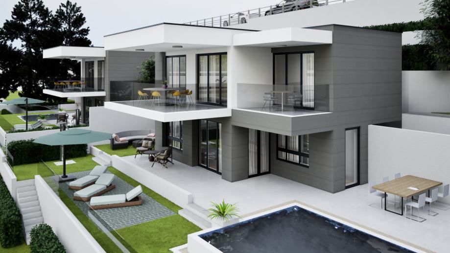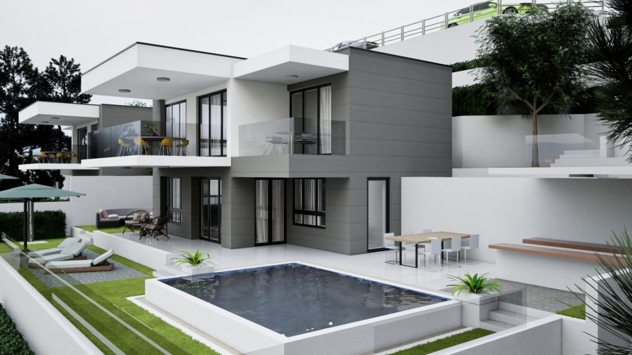Na prodaju je građevinsko zemljište sa idejnim projektom za dvije moderne i luksuzne kuće s bazenima (postoji mogućnost gradnje još dvije), smješteno u malom dalmatinskom mjestu Živogošće predio Murave sa prekrasnim pogledom na more.