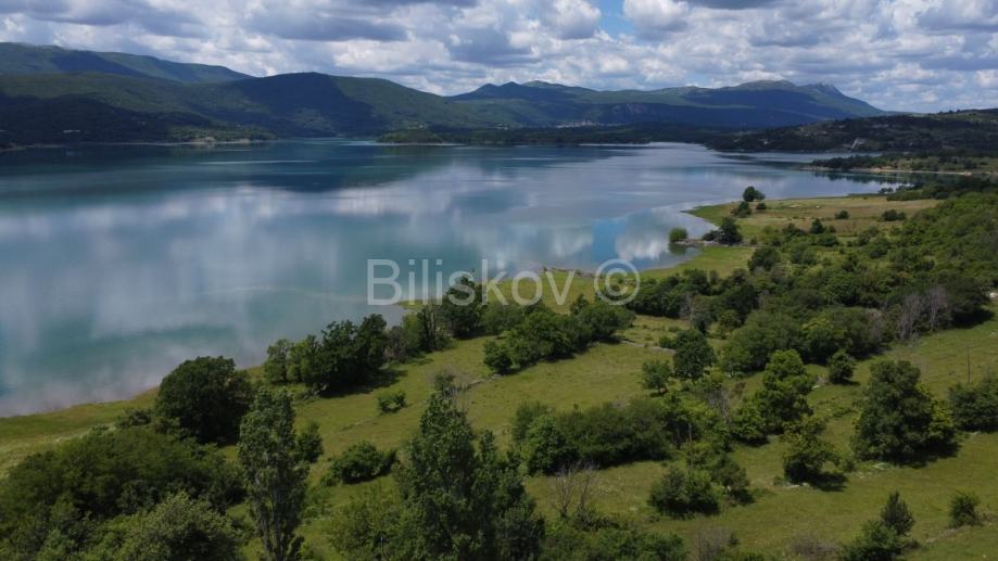 Sa samog zemljišta pruža se predivan otvoren pogled na jezero, planine i grad Vrliku.