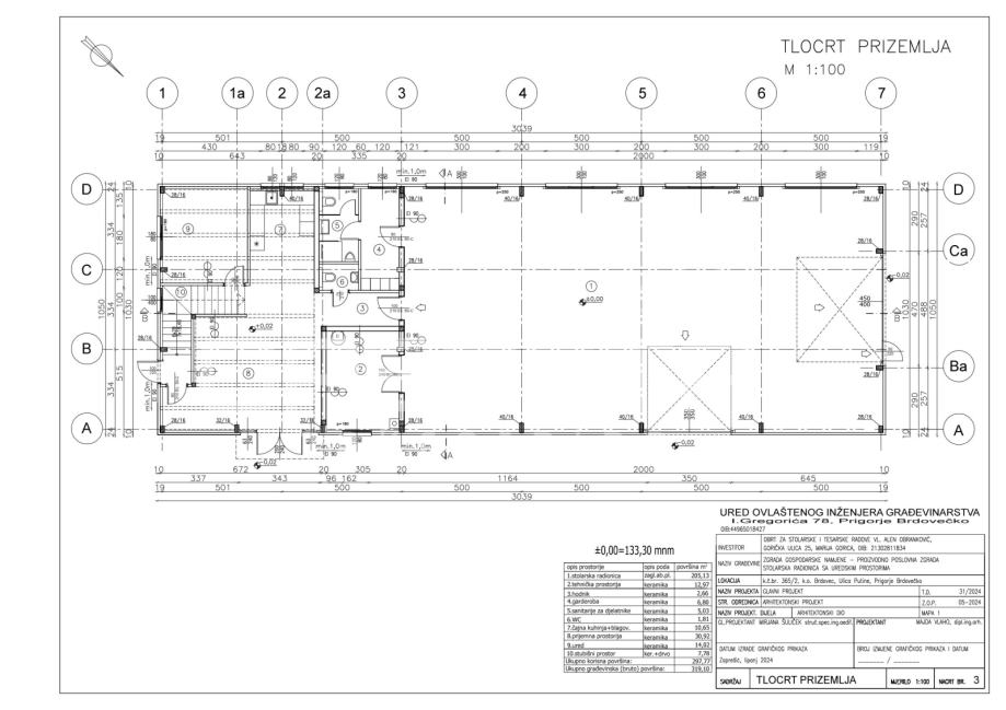 Ukupna površina objekta: 510 m², koji se sastoji od: