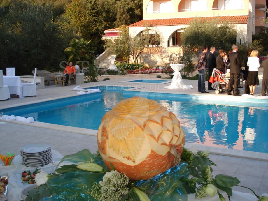 Restoran ima smještajni kapacitet 80 osoba. Uz bazen koji se nalazi u starom masliniku postoji vanjski bar te terasa.