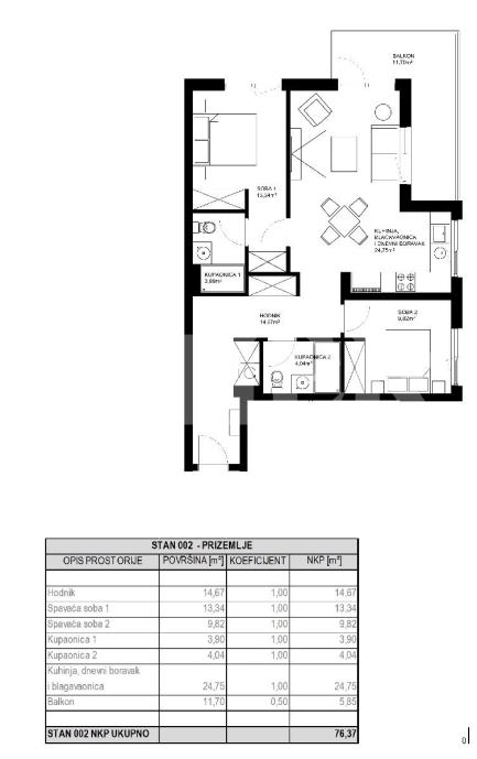 Uz svaki stan je obavezna kupnja parkirnog mjesta po cijeni od 10.000 eura i spremišta, nije uključeno u cijenu stana.