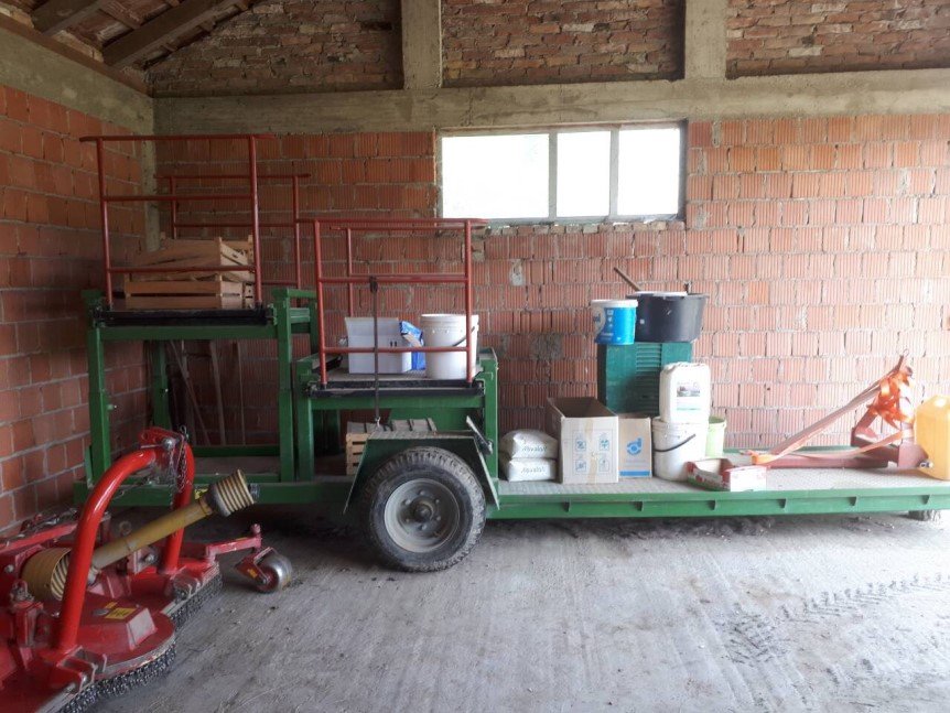 Traktor Same 2010 g 90 KS, atomizer Munhof 1.500 L, Humus malčer, herbika Muler, platforma za branje, traktorski viličar, 2 pumpe za vodu, sitni alat….