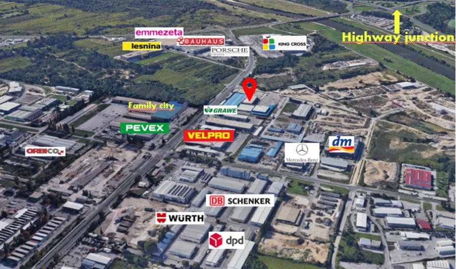 U okruženju nekretnine nalazi se mnoštvo prodajnih, logističkih i Shopping centara poput Pevex-a, Bauhausa, Lesnine, Emmezete, Velpro, Orbico, Schenker, DM i mnogi drugi subjekti koji su prisutni u najvećoj zagrebačkoj gospodarskoj zoni.