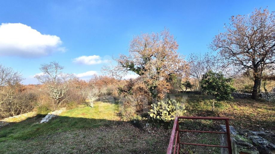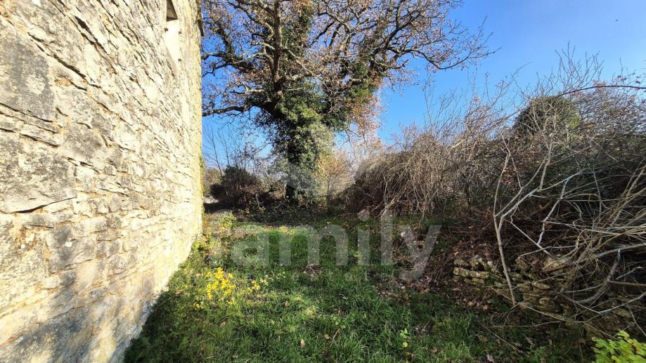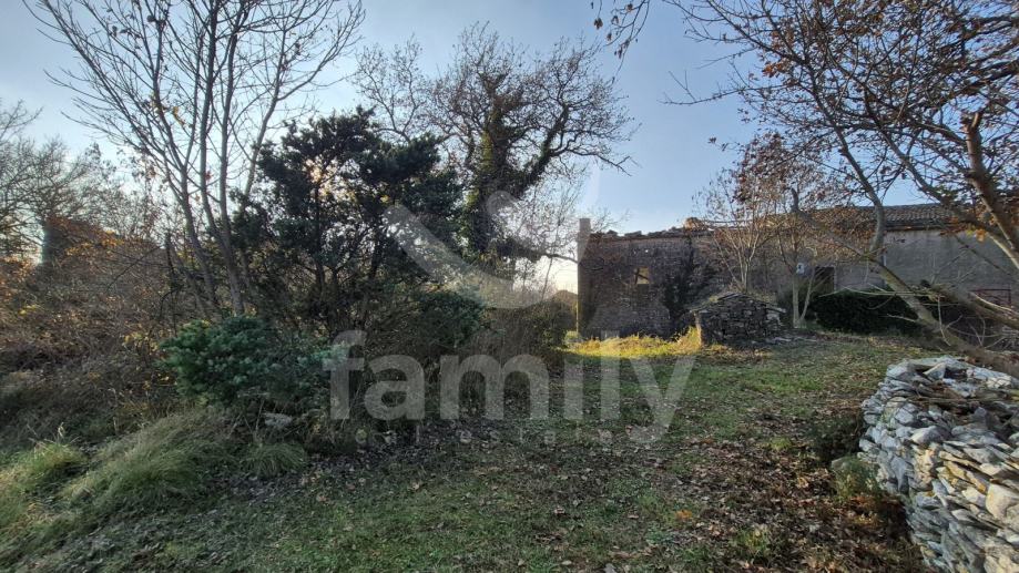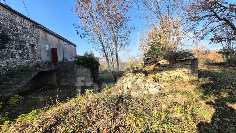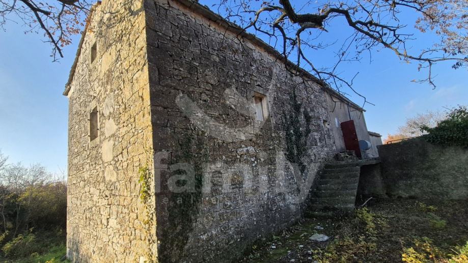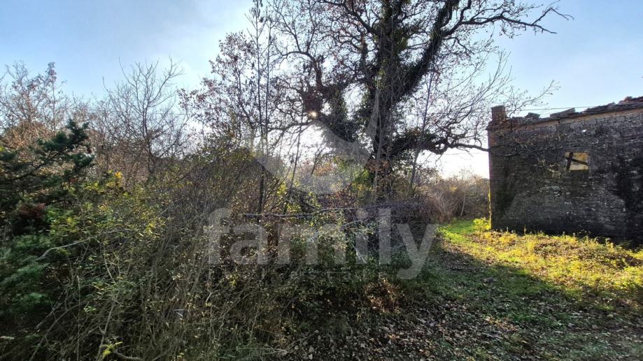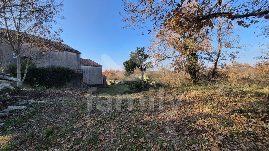 Na prodaju je dvojna kuća za renovaciju smještena na iznimno prostranom zemljištu, na lokaciji koja pruža potpunu privatnost, tišinu i pogled na šumu imanje sveukupne površine 36 074 m2. Nekretnina se nalazi svega 30 tak metara od asfaltirane ceste, s osiguranim pristupnim putem, a istovremeno je dovoljno udaljena od svakodnevnih gužvi. Na zemljištu ima niskih stabala hrasta, ostalo je pašnjak i vinograd. Zemljište je raznoliko i vrlo atraktivno: jedan dio je ograđen tradicionalnim suhozidom, dio je potpuno ravan i idealan za vrt, bazen ili rekreacijski prostor, dok cijelo zemljište odiše autentičnim istarskim karakterom i prirodnim okruženjem. Na samom zemljištu nalazi se dvojna kamena kuća kojoj je sveukupna površina oko 435 m2 raspoređeno na prizemlje, kat i potkrovlje. Kuća raspolaže s visokim potencijalom za uređenje za stanovanje ili u ugostiteljske svrhe. Na katu se trenutno nalaze soba, kuhinja i manji dnevni prostor s grijanjem na drva, dok je kupaonica odvojena. Drugi dio objekta ima zaseban ulaz i danas služi kao garažni prostor i spremište, s mogućnošću prenamjene u dodatne stambene ili turističke sadržaje. Druga polovica kuće je skroz u kamenu s tim da je porušena. Ispred kuće nalazi se urbanizirani dio zemljišta pogodan za gradnju dodatnih objekata na svega 3602 m2. Zemljište je pozicionirano sa blagim nagibom tako da posjeduje otvoreni pogled, a sa prizemlja se djelomično vidi i more. Okvirno 20 metara udaljeno od kuće nalazi se drugi objekt koji je djelomično postojan u kamenu koji je korišten kao štala sveukupne površine 90 m2. Ispred nekretnina posjedujemo i kažun sveukupne površine okvirno 10 m2 . Zbog velikog broja suhozida postoji velika količina kamenja za ograditi česticu. Do objekta se nalazi i cisterna za vodu. Jedn od dva objekta posjeduje uporabnu dozvolu.