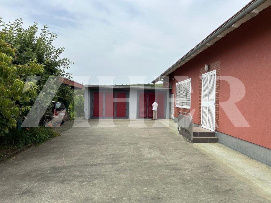 Kuća ima dva dnevna boravka s kupaonama, dva puta po dvije spavaće sobe s kupaonama, dvije kuhinje sa ostavama, jedan veliki zajednički prostor za odmor, garažu, dva natkrivena parkirna mjesta i okućnicu od 650 m2 s voćkama i dodatnu građevinsku parcelu od 570 m2.