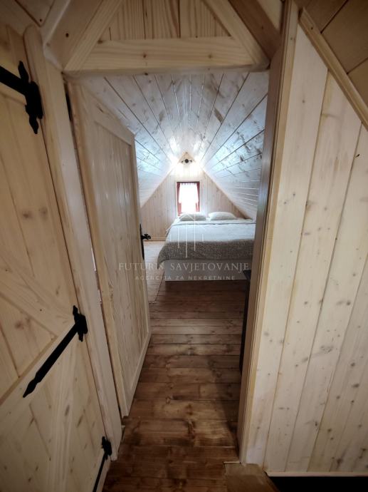 Na ovom prelijepom imanju smještena je drvena kuća od 65 m², koja se sastoji od prizemlja i potkrovlja, a svaki kutak odiše toplinom i šarmom.