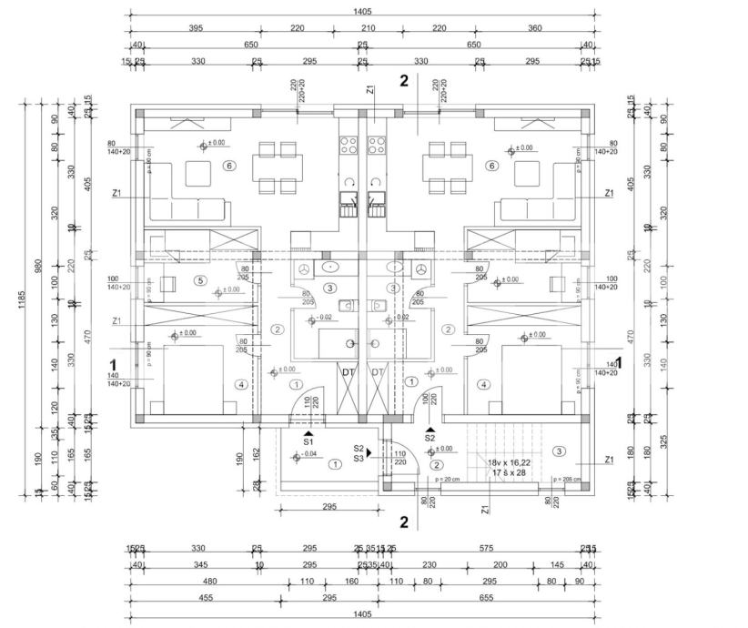 Projekt u fazi ishođenja građevinske dozvole, objekt sa tri stana, dva u prizemlju s vrtom i stan na prvom katu s velikom terasom i vrtom, svakom stanu pripadaju 2 parkirna mjesta.