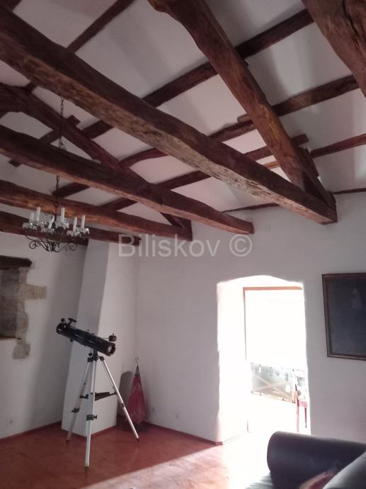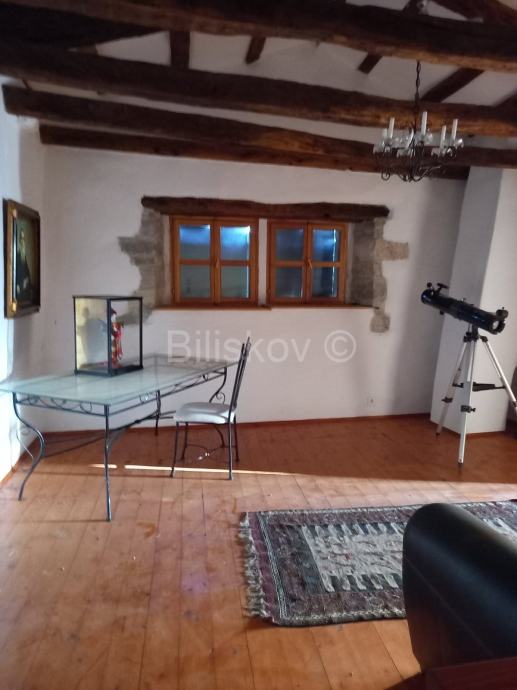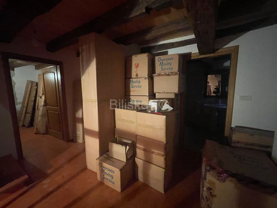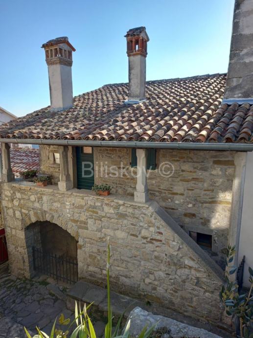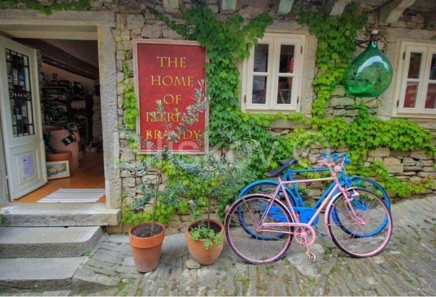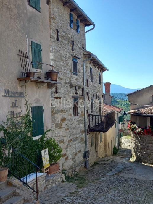Jedinstvena višestoljetna,troetažna, kamena kuća površine 294 m2 smještena je u samom srcu Huma, najmanjeg grada na svijetu, s prekrasnim pogledom na glavni trg i povijesnu jezgru grada.