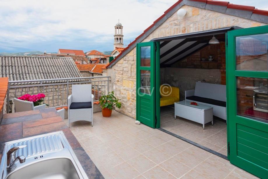 Na trećem katu nalazi se prostrana krovna terasa, djelomično natkrivena, s vanjskim tušem i dobrim dijelom zaštićena od pogleda, što pruža potpunu privatnost.