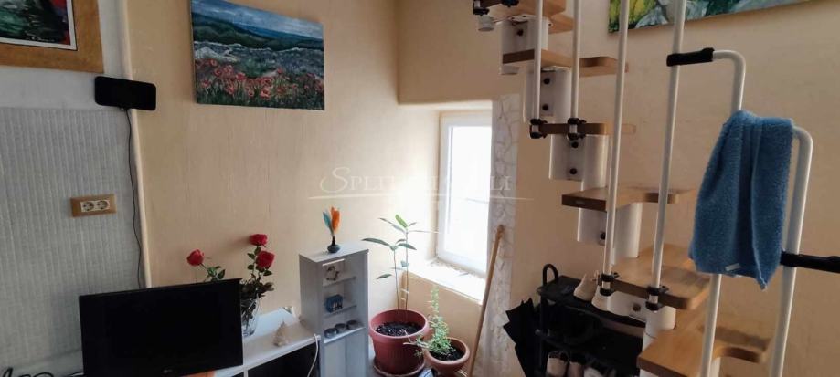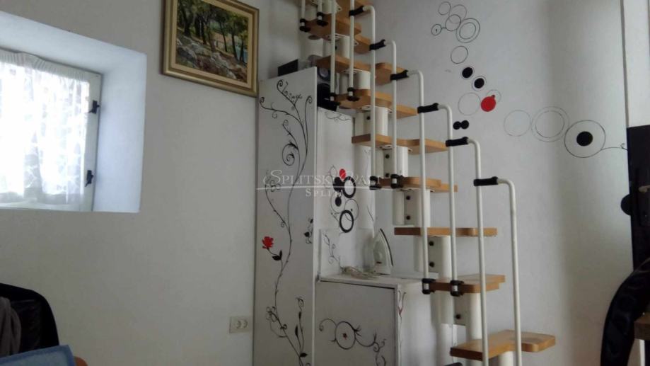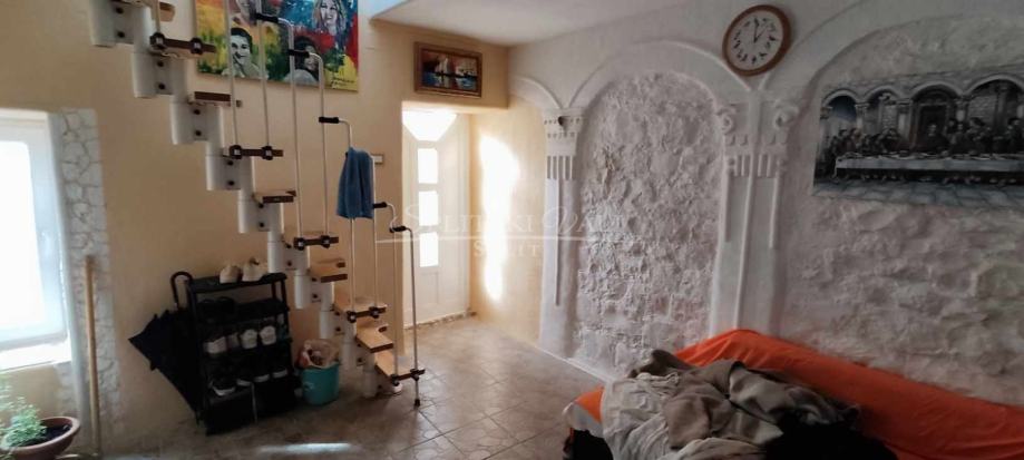 Na prvom katu do kojeg se dolazi vanjskim skalama nalazi se veranda s ogradom, ulaz u dnevni boravak s trosjedom te po potrebi može biti kao soba. Unutarnje stubište vodi do drugog kata gdje se nalaze spavaća soba i kupaonica, a zatim i do trećeg kata gdje se nalazi još jedna spavaća soba. Kuća ima dvije kupaonice. Nove instalacije vode i struje, internet, tv satelit. Cijeli namještaj je u cijenu, a parking mjesto osigurano.