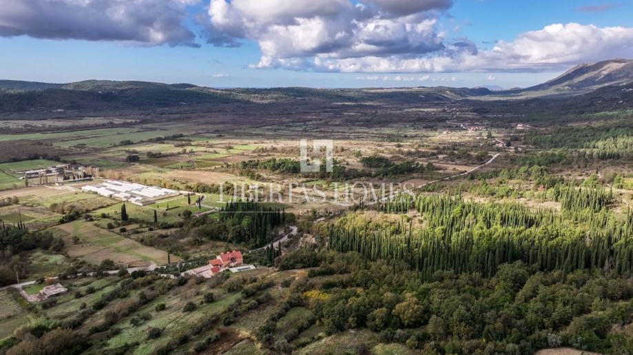 Kuća se smjestila na zemljištu od čak 3050 m2, obuhvaćajući prostrano dvorište i okolno zemljište koje pruža osjećaj prostranosti i privatnosti, a nudi mnoge druge opcije. Glavna kuća s podrumom prostire se na otprilike 180 m2 stambene kvadrature, pružajući obilje prostora za udoban život. Pripada joj i podrum kao i prekrasna terasa s pogledom na Konavosko polje. Pristup kući je jednostavan i neometan, omogućujući vam lak dolazak automobilom, a prednost je i dovoljno mjesta za parkiranje ispred same kuće.