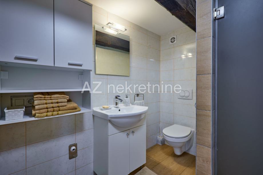 U potkrovlju je „open space“ prostor s 5 ležajeva i kupaonica.