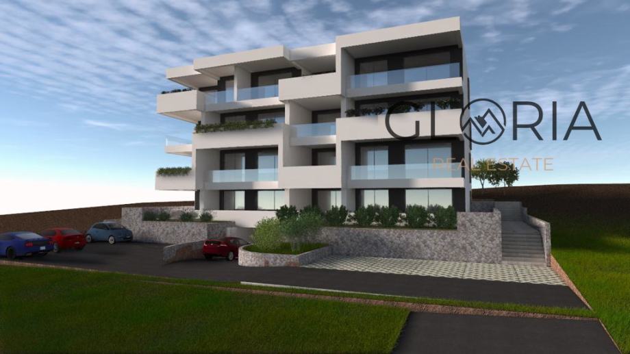 Prodaja, komforan dvosoban stan s pogledom na more, Okrug Gornji! U ponudi je moderan dvosobni stan površine 72,15 m2, smješten na 1. katu novogradnje s ukupno četiri etaže, na iznimno atraktivnoj lokaciji u Okrugu Gornjem.