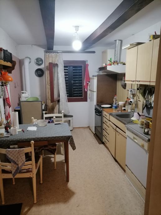 -kuća je visoka prizemnica oko 95 m2 na betonskoj deki, 3 sobe i nus prostorije. Pod kuče je oko 90 cm višlji od nivoa dvorišta Ispod rijela kuće je betonksi podrum, oko 35 m2. Sve je namješteno i održavano te useljivo odmah.