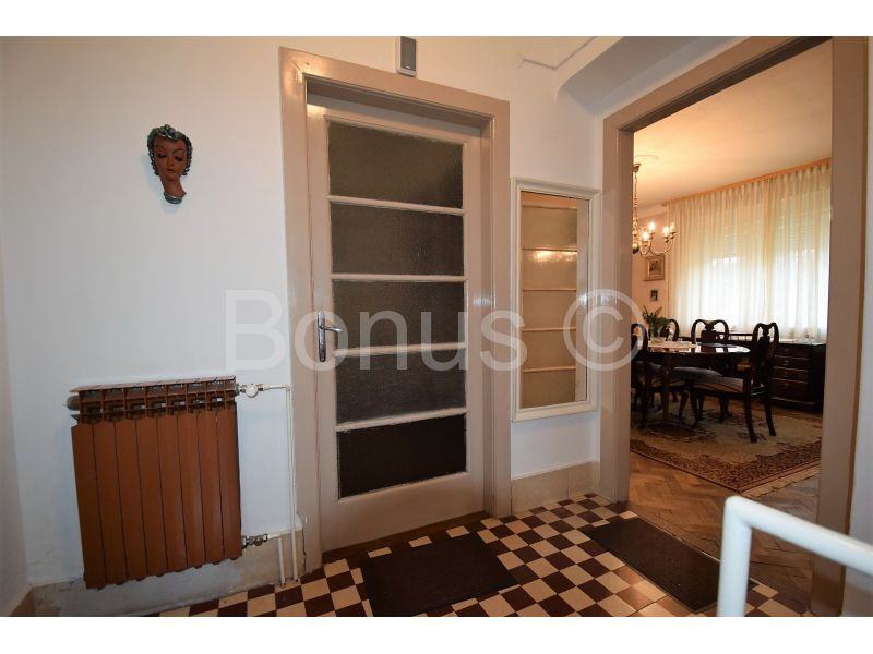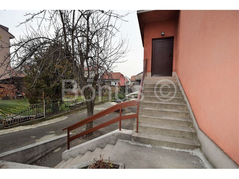 Kuća se sastoji od dvije etaže; prizemlja i prvog kata. U prizemlju se nalazi: kuhinja s blagovaonom, kupaonice, hodnik, dvije manje sobe, dnevnog boravka, kotlovnice/vešeraja i ostave. Na katu se nalazi: kupaonica, spavaća soba, dnevni boravak, te velika terasa od 75m2. Kući pripadaju dvije garaže, i veliko dvorište. Stan u prizemlju je adaptiran prije godinu dana, a za stan na prvom katu postoji I poseban ulaz sa vanjske strane.