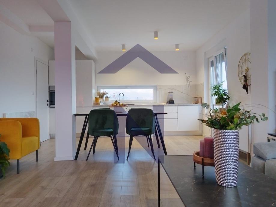 Kuća je izgrađena 2022. g. na parceli površine od 270m2. Nalazi se u mirnom dijelu, okružena zelenilom i urbanim vilama.