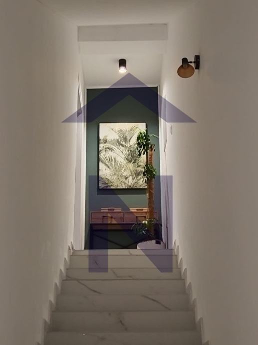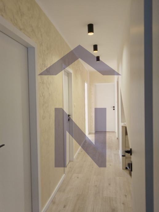Stambena površina iznosi 138m2. Sastoji se od 3 spavaće sobe i jedne kupaonice u prizemlju, te kuhinje, blagavaonice i dnevnog boravka s balkonom i lođom i kupaonice na prvom katu.
