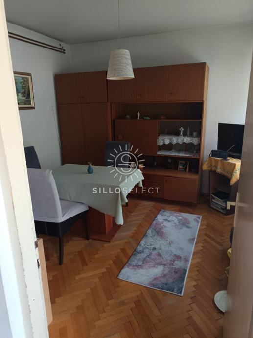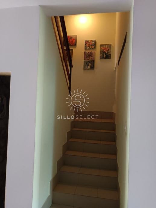 Gornja etaža: predsoblje, kuhinja/blagovaonica i dnevni boravak s izlazom na balkon, dvije sobe, kupaonica i odvojeni WC.