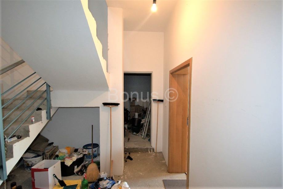 Prizemlje se satoji od kupaonice, kuhinje te četiri sobe. Prvi kat se sastoji od tri spavaće sobe, dnevnog boravka, kuhinje s blagavaonicom, kupaonice te terase površine 35m2. Potkrovlje je u roh bau stanju. U sklopu garaže se nalazi sanitarni čvor.