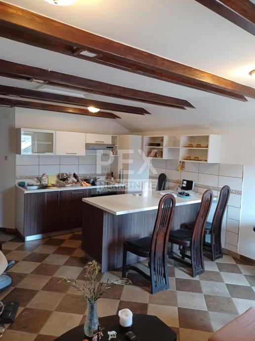 Na katu su dva stana, od kojih jedan ima tri spavaće sobe,dnevni boravak,kuhinju i kupaonu,a drugi dvije spavaće sobe,dnevni boravak,kuhinju i kupaonu.