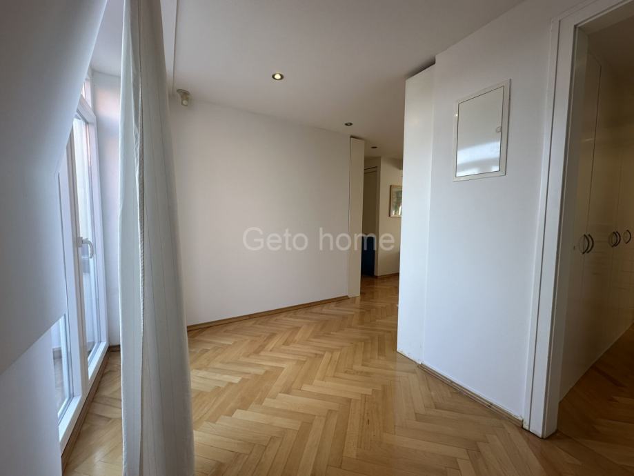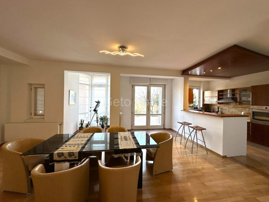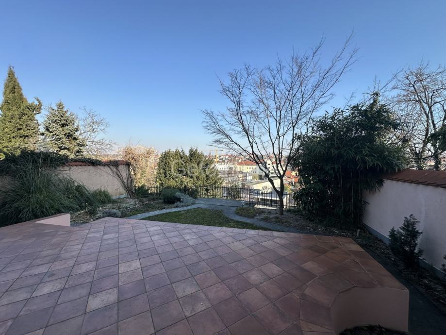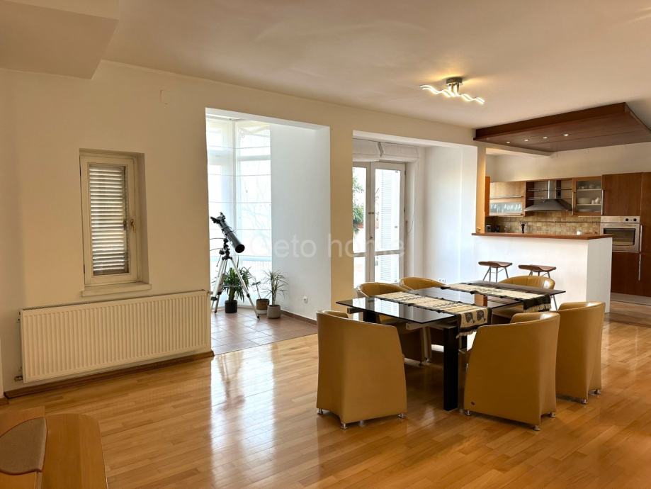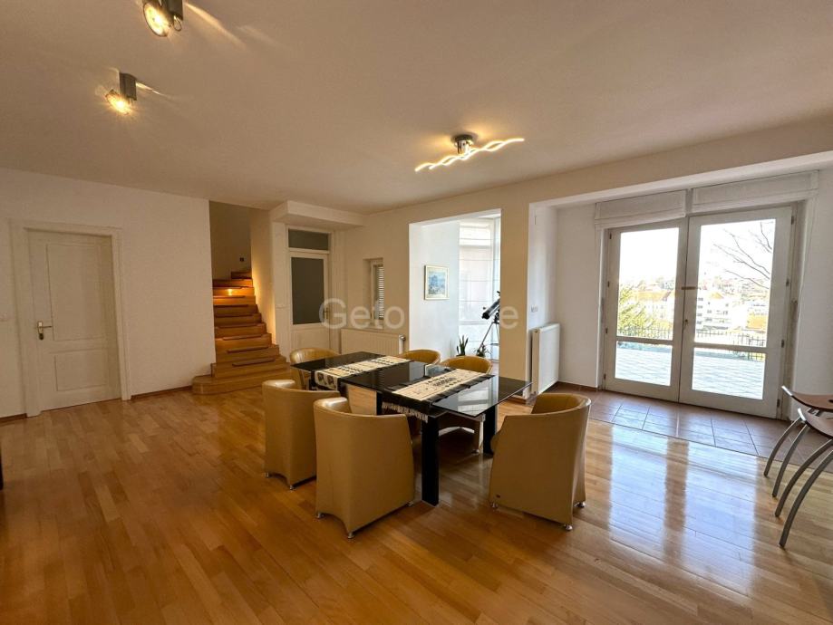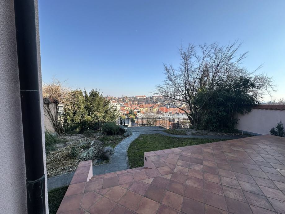 Kuća površine 330 m² smještena je u atraktivnoj lokaciji na Ilirskom trgu, u blizini centra grada, s prekrasnim vrtom, terasom i panoramskim pogledom na donji grad.