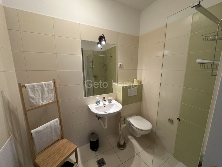 Prizemlje Prostrani open-space dnevni boravak s kuhinjom i blagovaonicom, terasa, vrt, kupaonica s WC-om, kotlovnica, te manji izdvojeni stan (30 m²), idealan za ured (2 prostorije, hodnik, kupaonica).