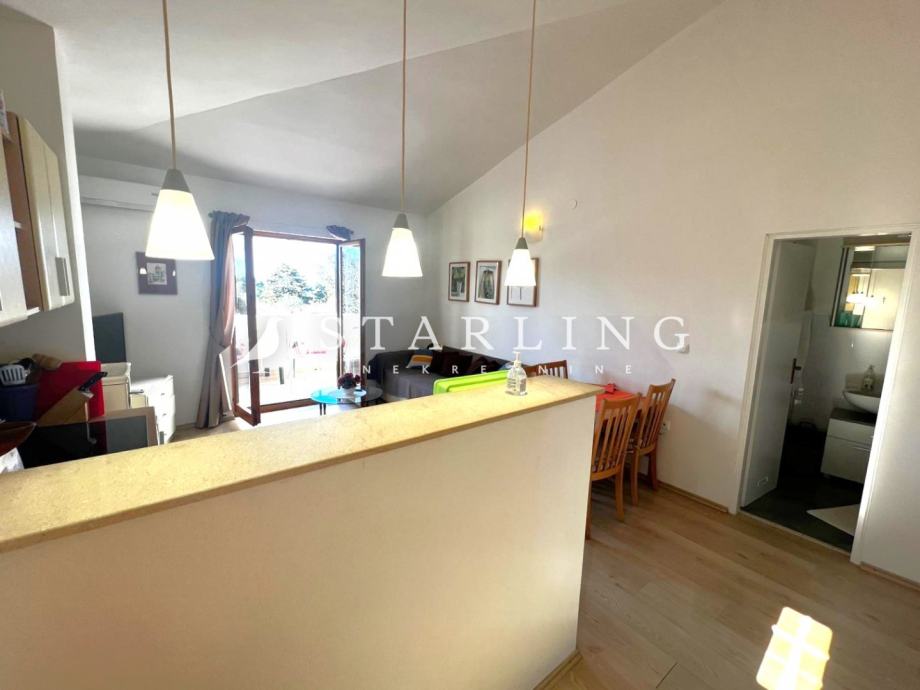 Dvosobni apartman se sastoji od dnevnog boravka s kuhinjom i blagovaonicom, jedne spavaće sobe, kupaonice s wc-om, hodnika i balkona.