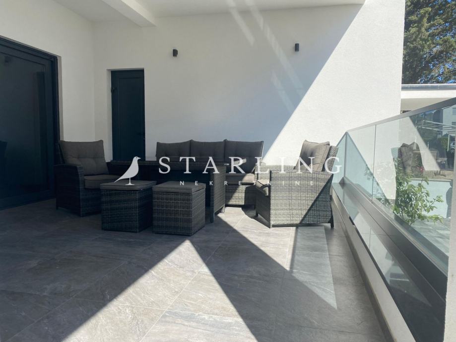 Kuća se prostire na tri etaže uz dodatak terase na krovu s pogledom na more i jacuzzijem.