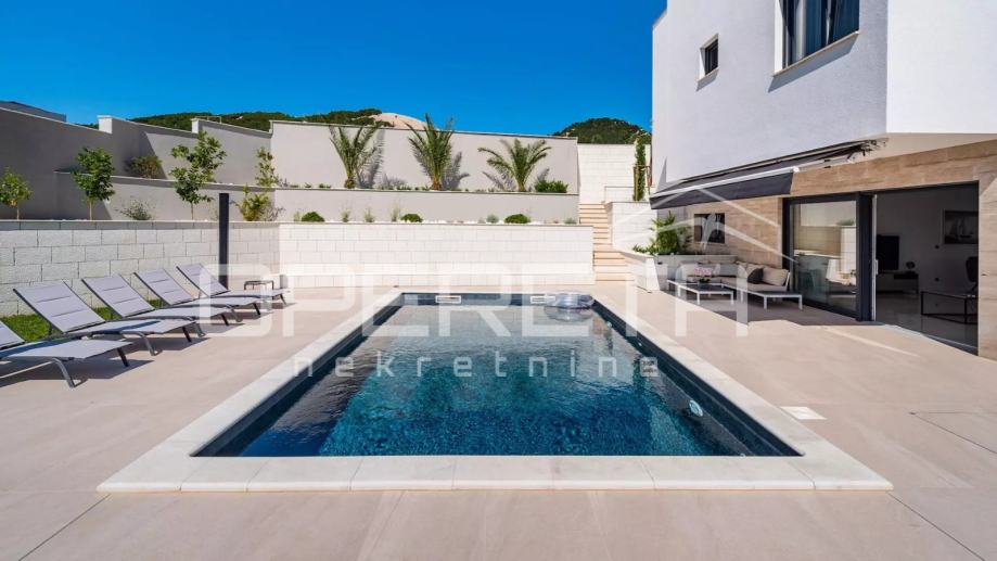 Prodaje je jedinstvena luksuzna dvojna vila sa bazenom u neposrednoj blizini mora i glavne prometnice.