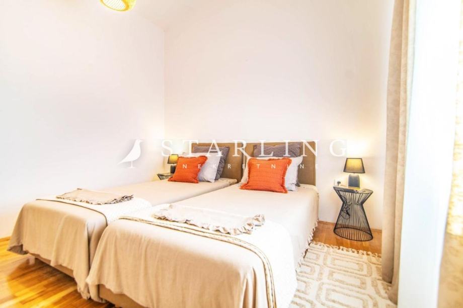 Ova prekrasna nekretnina sastoji se od moderno uređene kuhinje, prostrane blagovaonice, udobnog dnevnog boravka, tri elegantne spavaće sobe i tri luksuzna kupatila. Svaka soba opremljena je klima uređajem, vlastitim kupatilom i podnim grijanjem za maksimalnu udobnost.