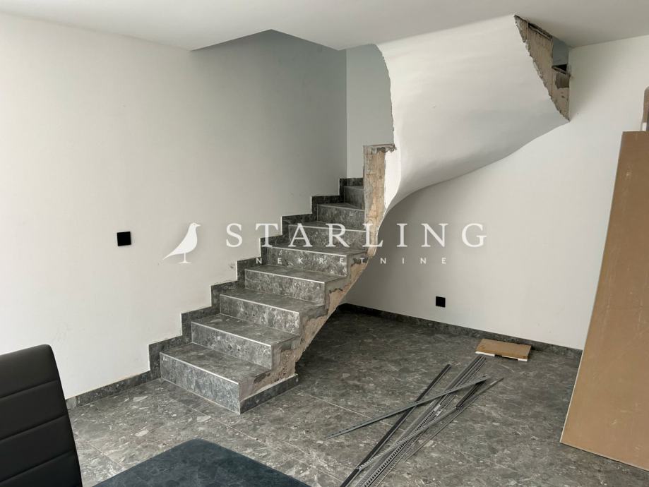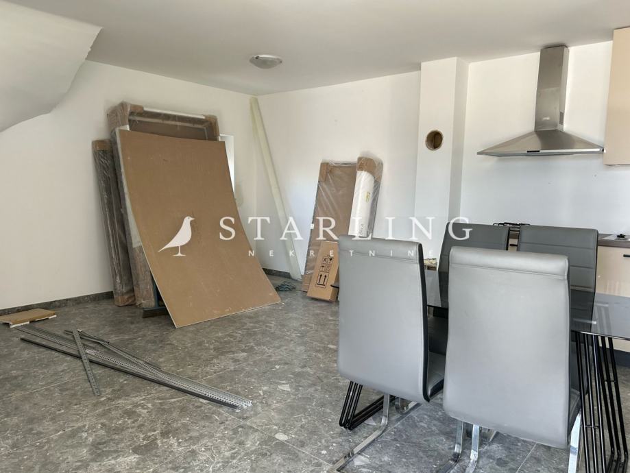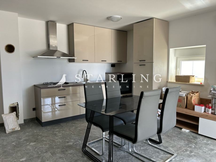 Prizemlje: Prostrani dnevni boravak povezan s kuhinjom i blagovaonicom. Otvoreni prostor omogućava lagan pristup vanjskom dvorištu i okućnici.