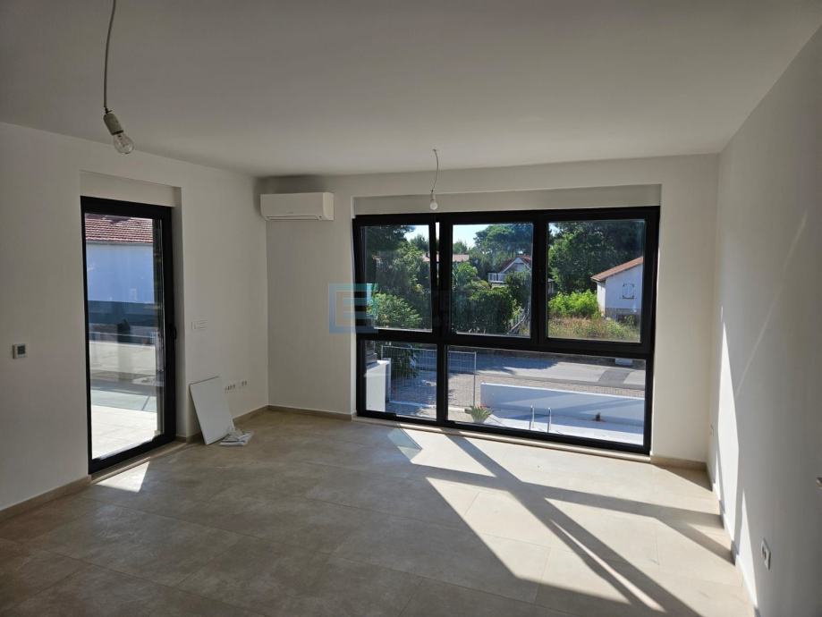 Kuća se sastoji od dvije jedinice. U prizemlju se nalazi garaža i pored nje apartman koji ima ulazni hodnik, kuhinju s blagovaonicom, dnevni boravak, spavaću sobu, kupaonicu te natkrivenu terasu. Na katu je apartman koji se sastoji od ulaznog hodnika, kuhinje s blagovaonicom, dnevnog boravka, dvije spavaće sobe, kupaonice i natkrivene terase. U prilogu su i slikovni prijedlozi unutarnjeg uređenja, sama kuća je nenamještena.
