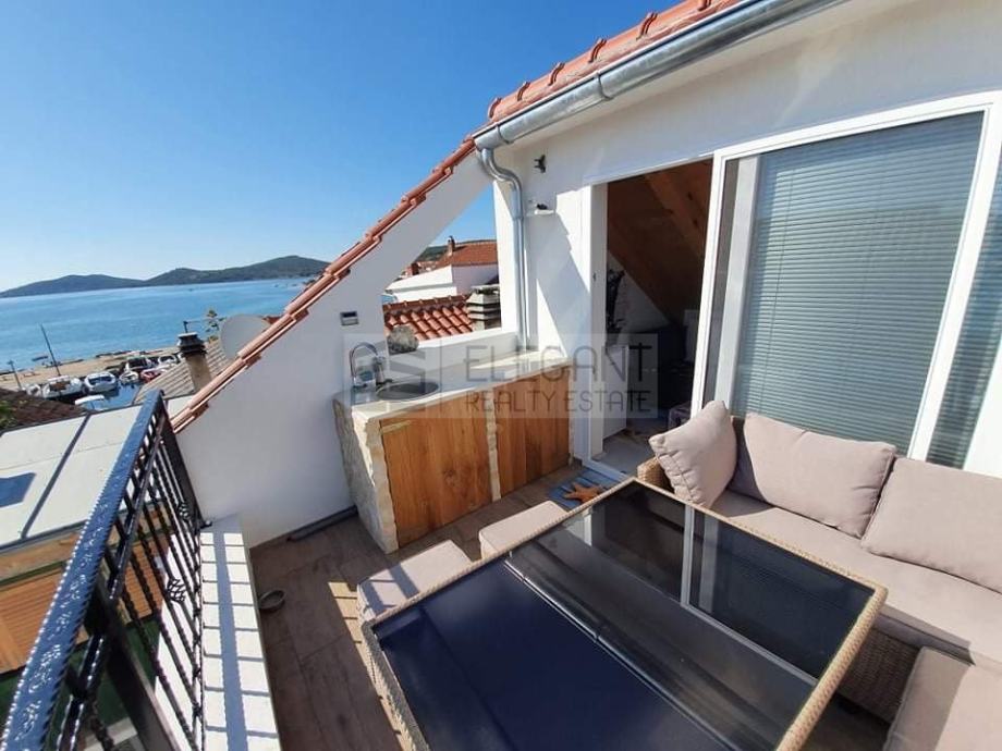 Prodaja kuće u mjestu Betina na otoku Murteru. Nalazi se u staroj jezgri ovog prekrasnog dalmatinskog mjesta koje odiše tradicijom. Kuća se sastoji od prizemlja i tri kata, u prizemlju je smiješten ulaz, kuhinja s blagovaonicom i toalet. Na prvom katu se nalazi spavaća soba te stepenište za drugi kat. Na drugom katu je smješten dnevni boravak s kupaonicom i toaletom i izlaz na treći kat gdje su još jedna soba i uređena terasa s predivnim pogledom na more.