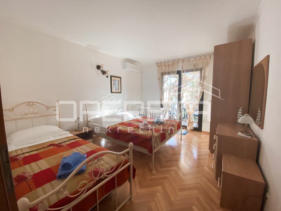 Na prvom katu smješten je prostran apartman s dvije spavaće sobe, dvije kupaonice, kuhinjom, blagovaonicom i terasom. Drugi kat sadrži tri odvojena apartmana – dva jednosobna s velikim terasama i prekrasnim pogledom, te jedan manji apartman sa zasebnom kuhinjom, hodnikom, kupaonicom i dva balkona. Na trećem katu nalaze se još dva apartmana, oba s po dvije spavaće sobe, kuhinjom, kupaonicom i balkonima.
