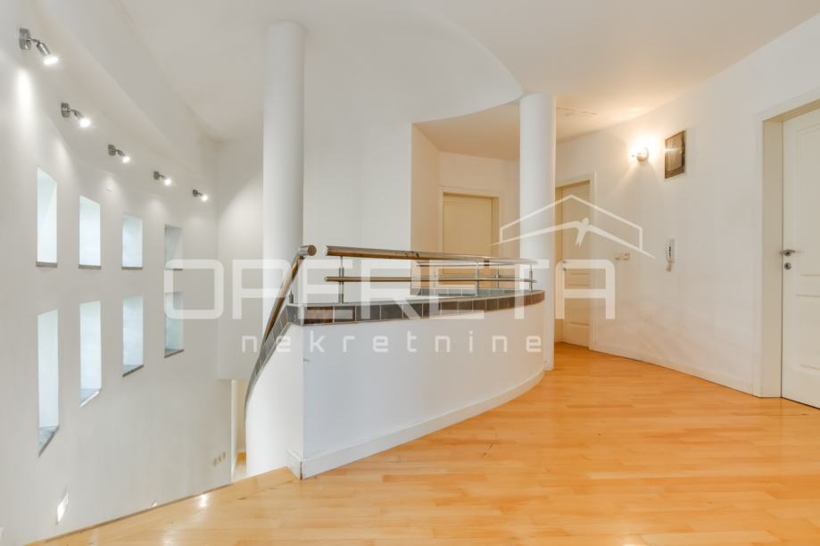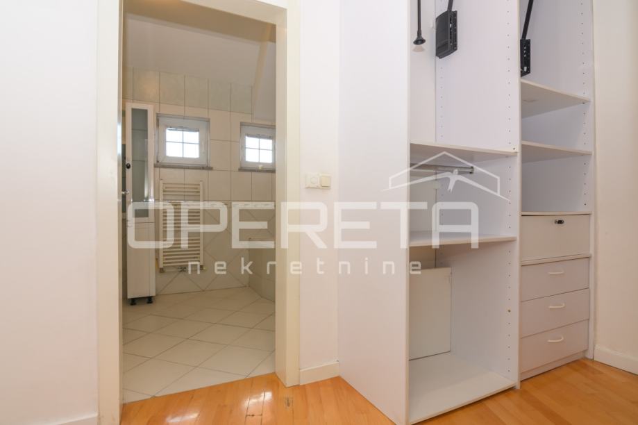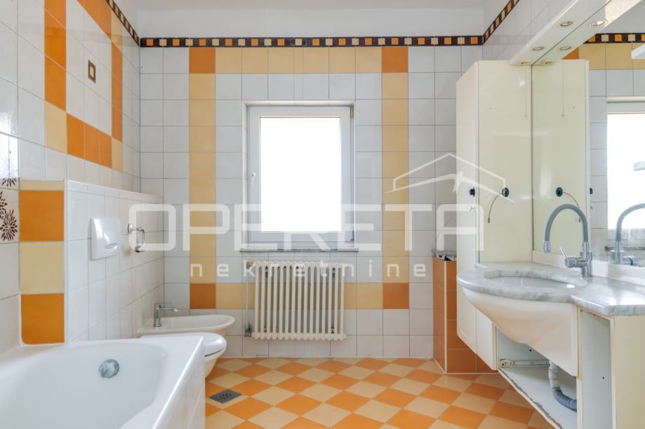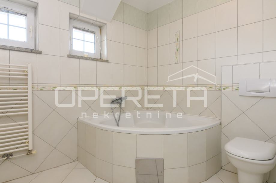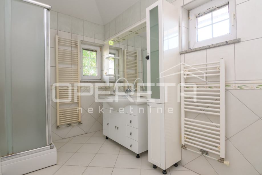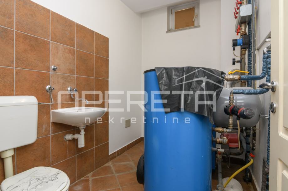 Jedna od soba je master spavaća s walk in ormarom kojim se prolazi do odvojene kupaonice. U podrumu kuće nalaze se servisne prostorije, odnosno vešeraj, kotlovnica i velika soba koja može biti spremište, konoba ili teretana.