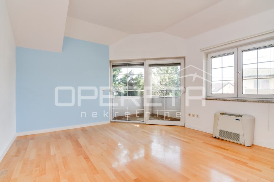 Na katu se nalaze 4 spavaće sobe, od toga tri spavaće sobe s vlastitim balkonom. Tri dječje sobe imaju zasebnu kupaonicu s otvorom za prljavo rublja koji je povezan s vešerajem u podrumu.