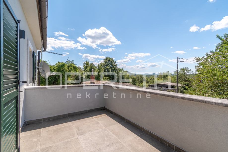 Na katu se nalaze dvije spavaće sobe s velikim bračnim krevetima, svaka s vlastitom kupaonicom opremljenom vrhunskom keramikom i modernim sanitarijama. Kupaonice su direktno povezane sa spavaćim sobama, čineći elegantan i funkcionalan prostor. Iz hodnika se izlazi na tradicionalni istarski balkon, s kojeg se pruža umirujući pogled na okućnicu i okolno zelenilo.